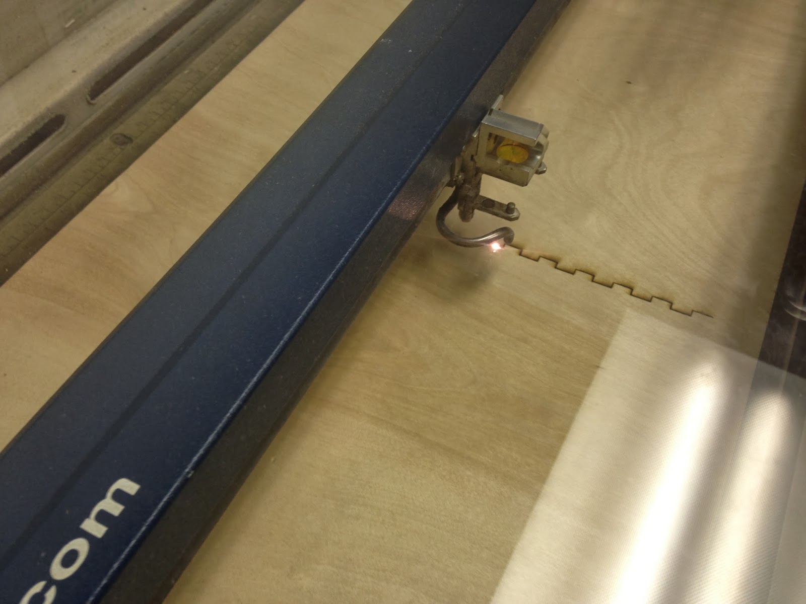 Here is the Epilog Laser in action. A guy was using it for the first time to make puzzle poxes out of 1/4″ plywood. You can do cuts in plywood up to 3/4″ max and also plexiglass.