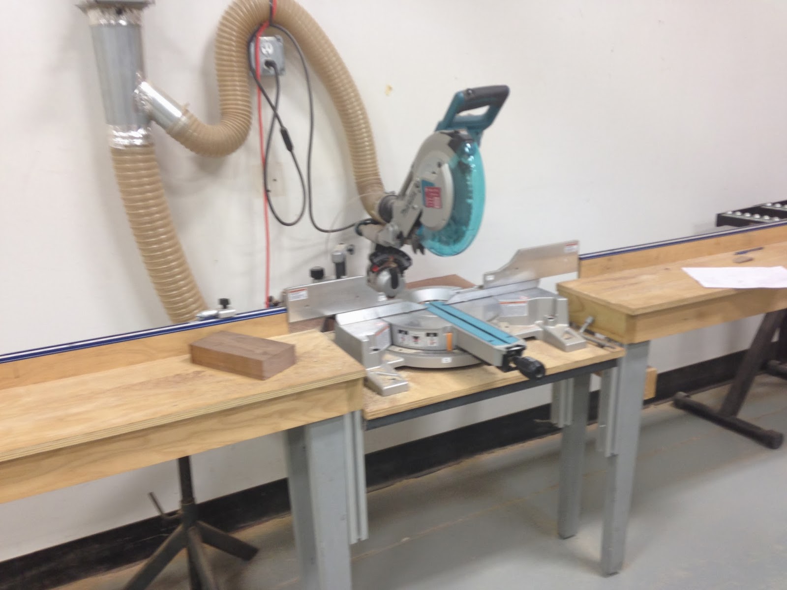 Compound miter saw. I was impressed with the long work table here.. great for long and/or heavy boards!