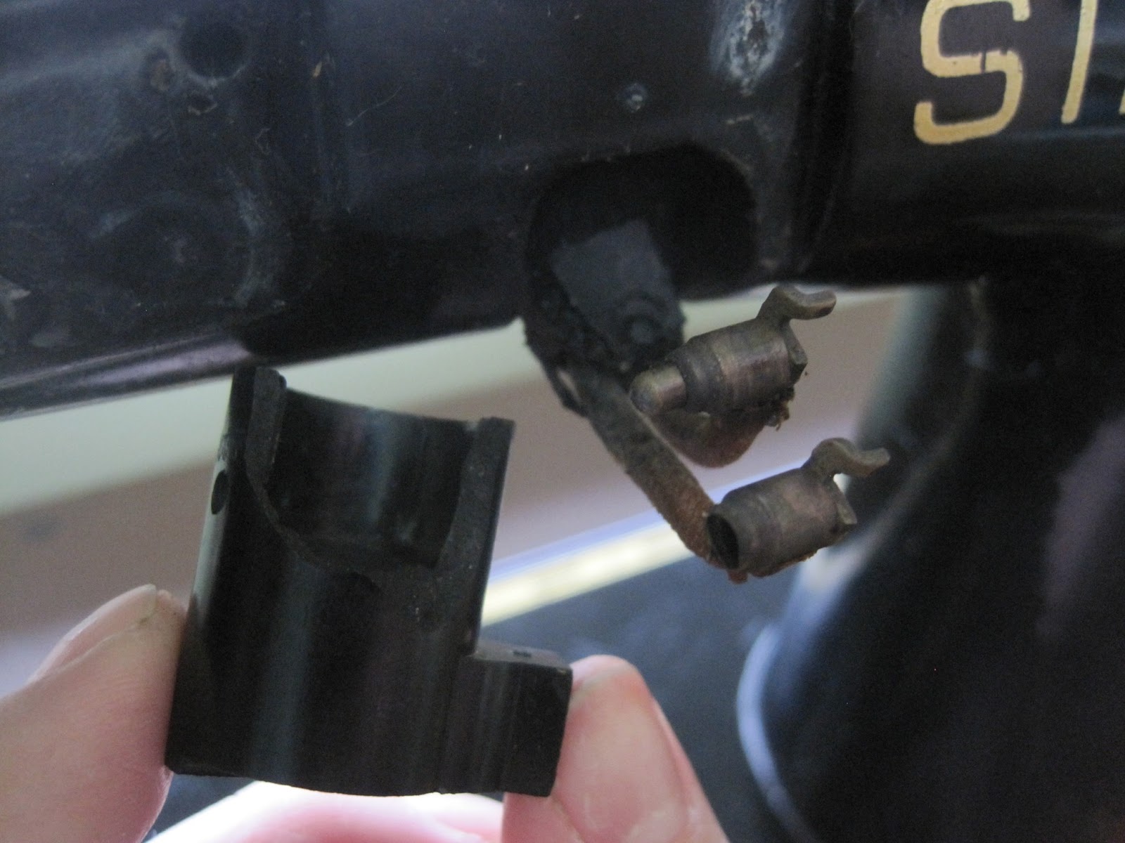 Here you can see I used my soldering iron to take off one of the terminals which I used to solder onto the broken one on my machine. You can see in the background the light works now! Couldn’t be more pleased!