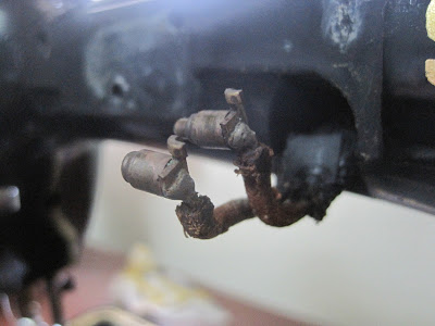 The plastic socket is also broken. Someone must have been yanking on the lightbulb to get it out or something!