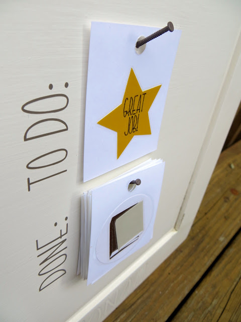 Next I created my own custom chore cards and the vinyl words to stick on my board! …(I can’t share this file because they’re not original Cricut images.. sorry)!