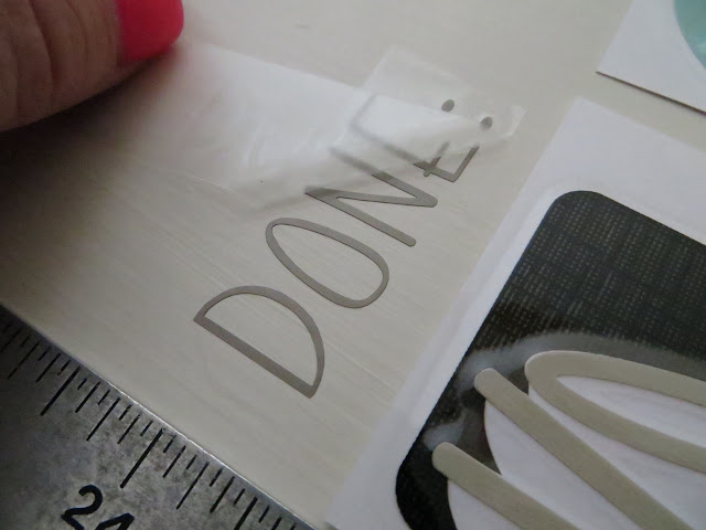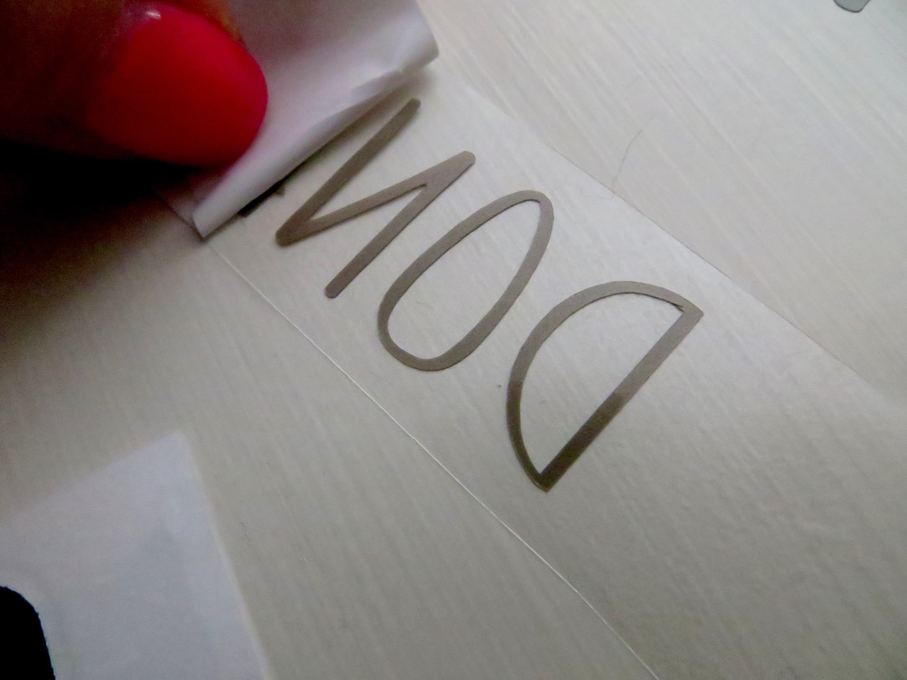 Scrap over the top again to make sure vinyl sticks to the bottom surface and carefully peel off contact paper.