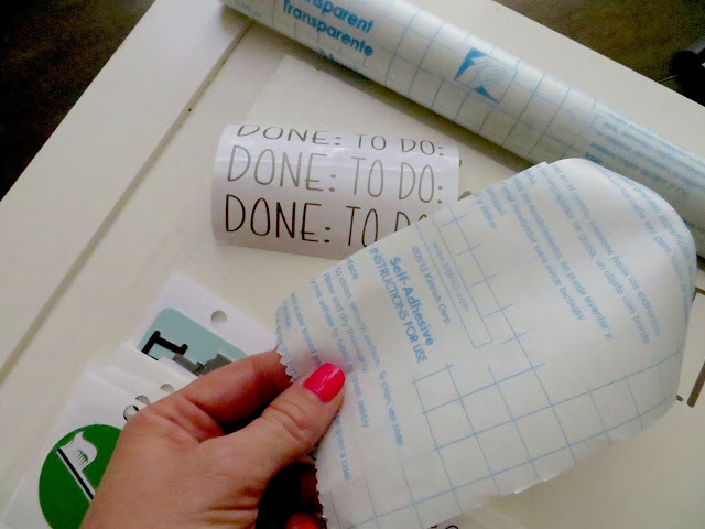 This is my first time doing vinyl from my own machine!  I used clear contact paper for transferring.