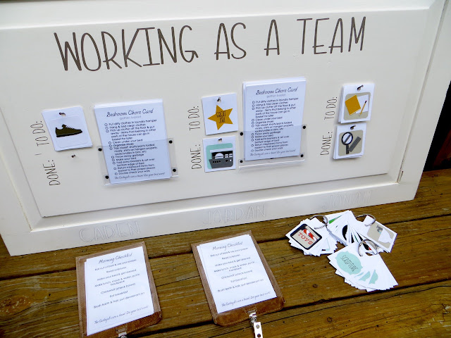I got the idea for the checklists/chore cards, here.