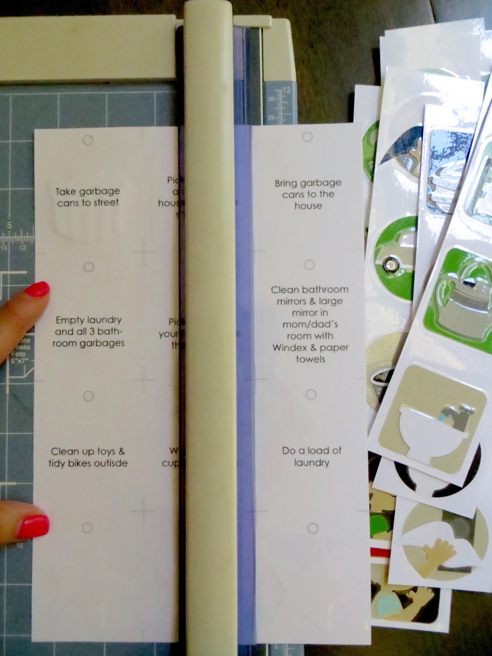 *If you don’t have a Cricut machine I bet someone you know does!  Also, I realized AFTER I cut out all the little chore cards that I could have ‘flattened’ the image and simply printed them out.