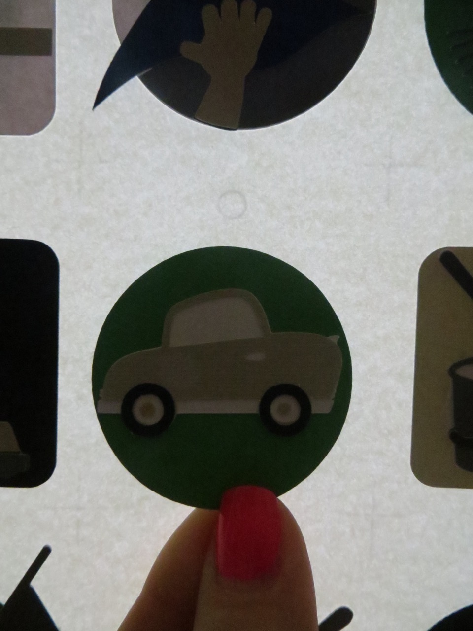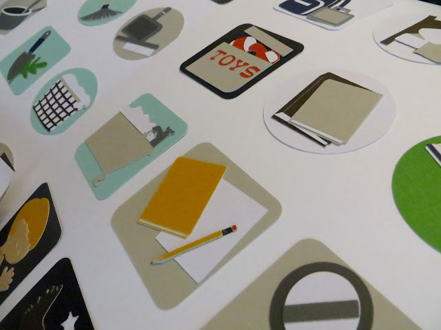 To line up the images on the back of the cards just right I put the pages against a window (so types words are facing out) to tape the images over.