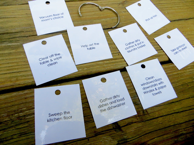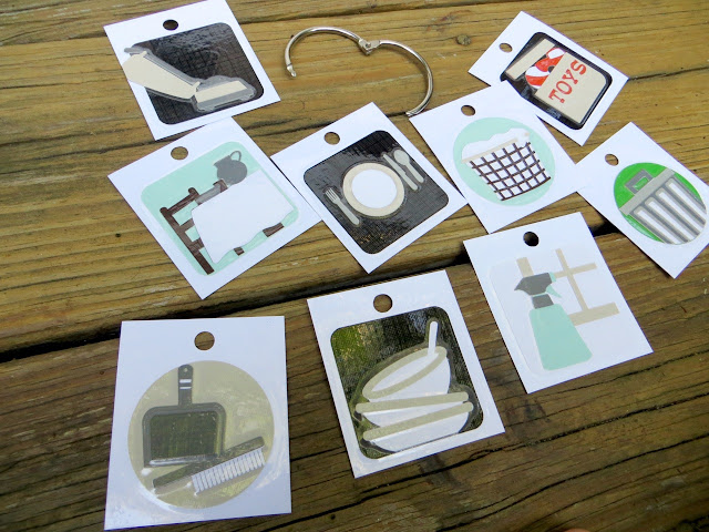 I have about 50 different job/task cards to choose from and I keep them on rings so I can flip through them easily and keep them together in a drawer.