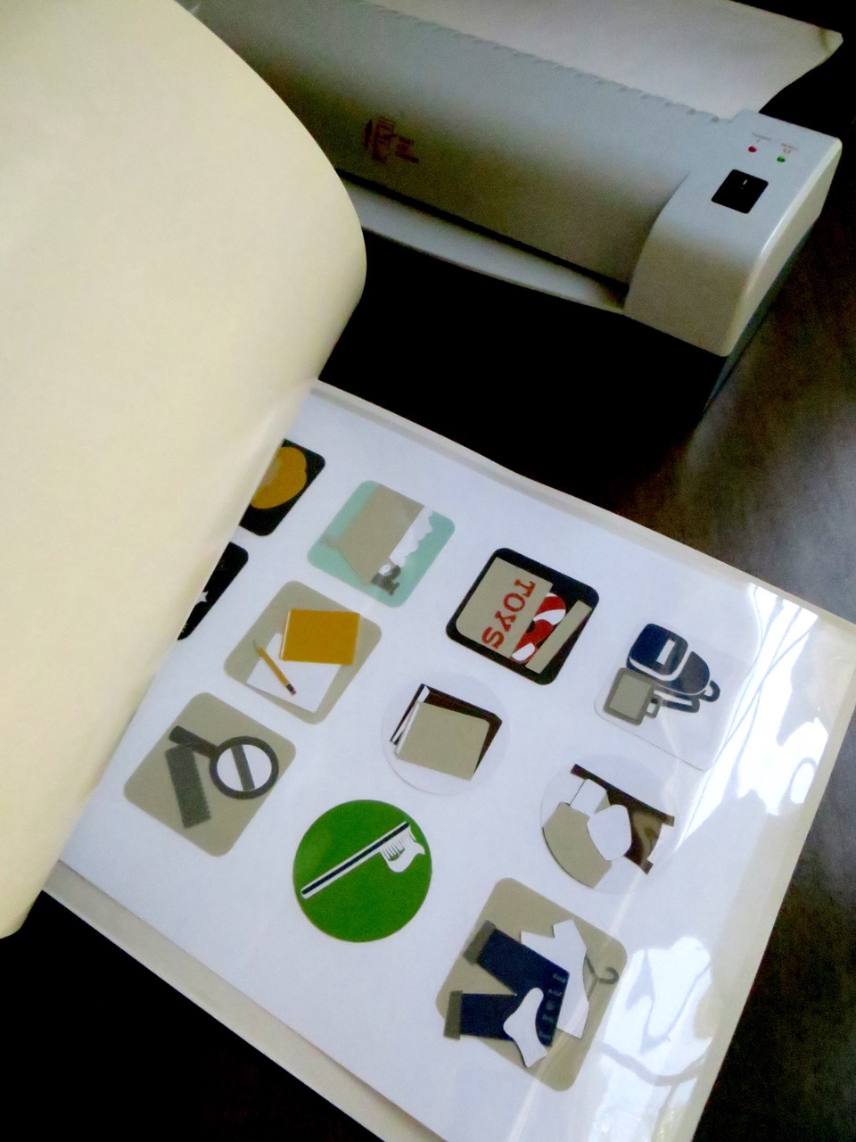 I used 7.5 MIL pouches to ensure they’d be durable and won’t bend easily.  TIP: A carrier is ideal when sending things through your laminator – it prevents wrinkles/waves in your finished product.