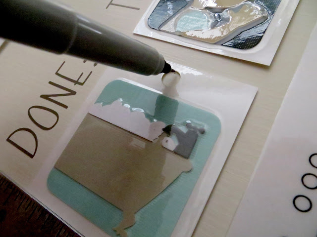 I outlined 2 corners on the large cards so I could make vinyl pockets while trying to keep the cards in that position.