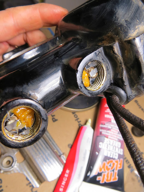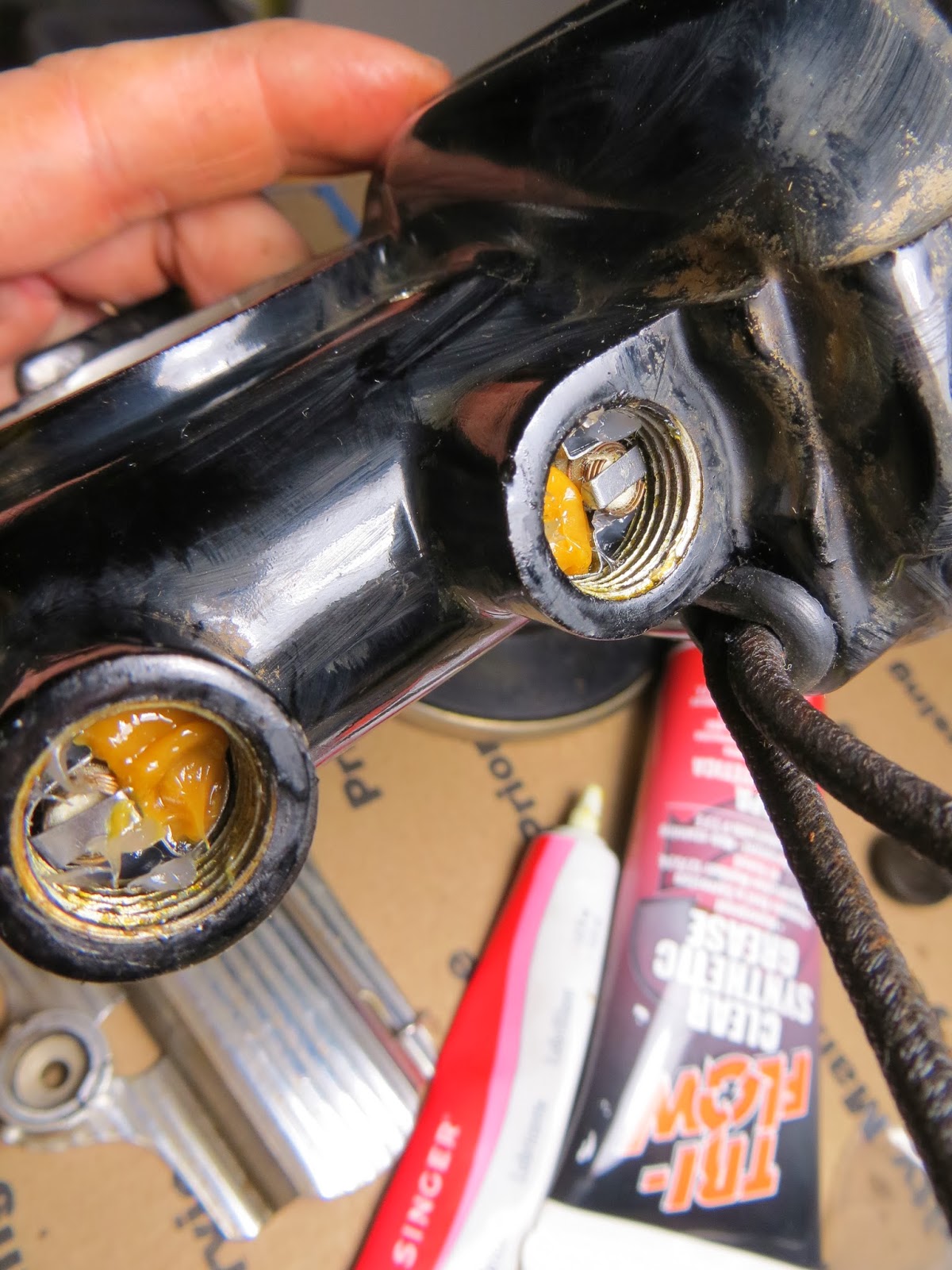 There was hardly any grease for the worm gear, and what was there was all dry. The spring for the bobbin winder is broken (you can see it poking up).