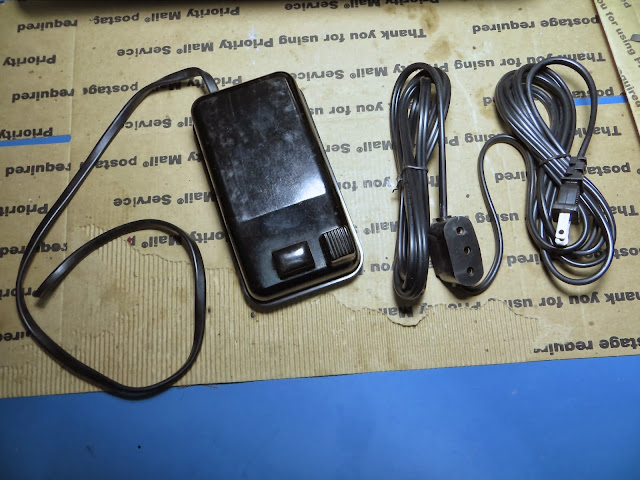 The machine had a funky knee lever pedal that was meant to stay attached to the cabinet so I found one on Ebay and bought a new cord.