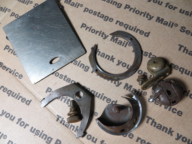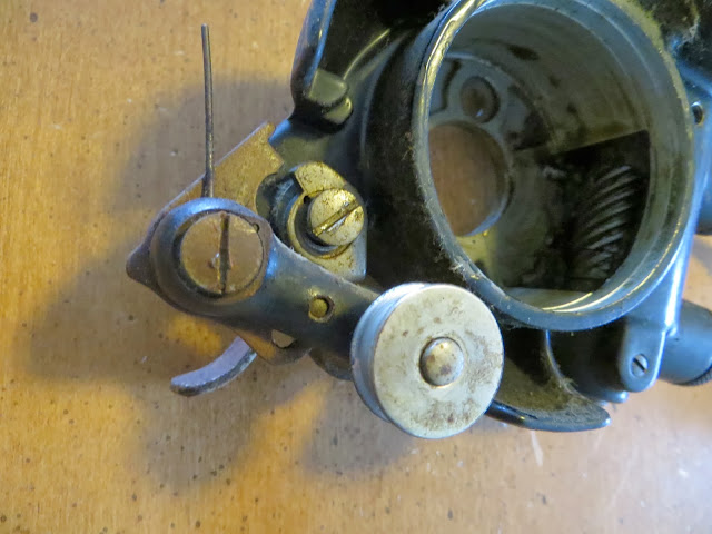 There was hardly any grease for the worm gear, and what was there was all dry. The spring for the bobbin winder is broken (you can see it poking up).