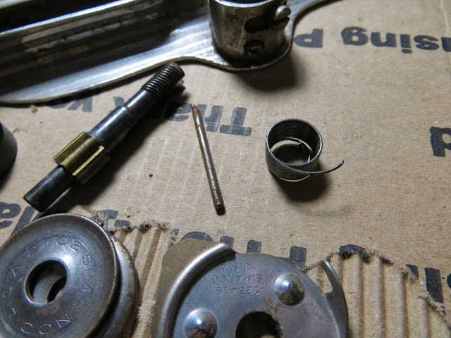 There was hardly any grease for the worm gear, and what was there was all dry. The spring for the bobbin winder is broken (you can see it poking up).