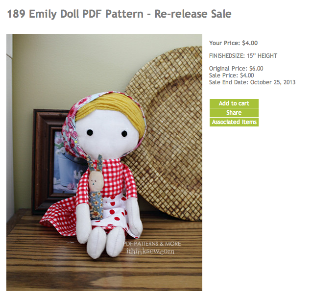 I saw this pattern over at ithinksew.com and it is the cutest doll I have seen and it’s only $4!