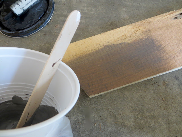 Starting over I wanted to make sure I was getting the color I wanted. I used my nifty syringes to measure out different ratios of stain to test what I liked best. I ended up going with a 1:5 ratio of whitewash (1) and walnut (5).