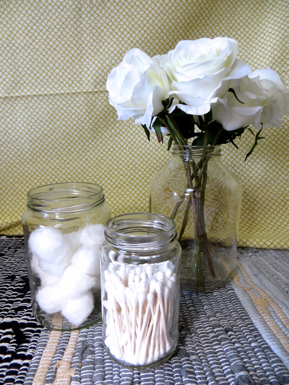 I used a pickle jar and jalepeno jar for our cotton balls and q-tips in the bathroom.