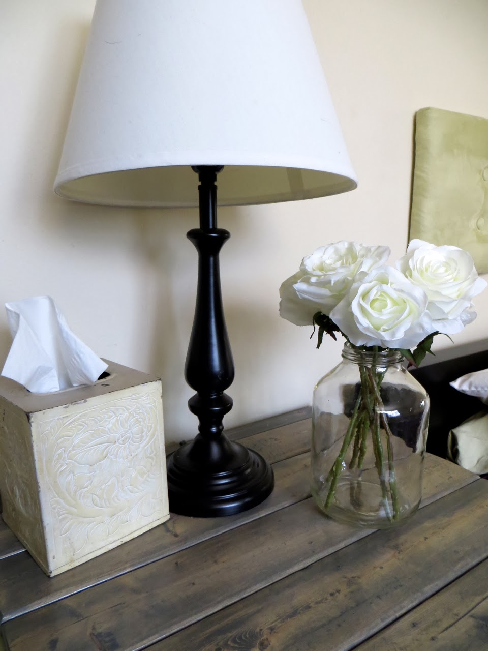 I used an applesauce jar on my nightstand for some artificial stemmed roses.