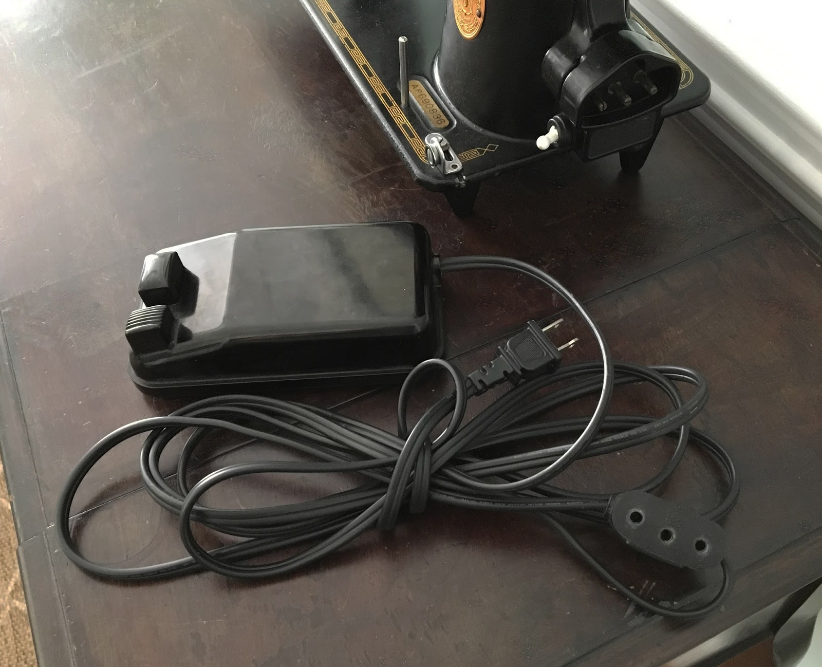 Here are some pictures of original foot pedal and power cord wires that I’ve seen: