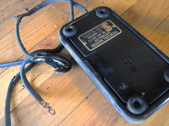 A lady brought me a few machines to re-wire and I could tell the original wires had already been replaced with what looked like a lamp cord (a big no-no). I was shocked to look inside and see the motor wires exposed (very dangerous) and a wad of electrical tape wrapped around the soldering joints: