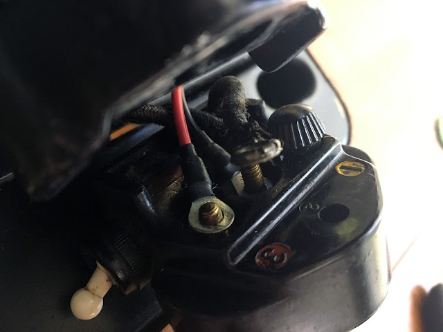 Put the light switch wire back on the red post. If you had a copper washer sitting on top of the light switch wire put it back now.