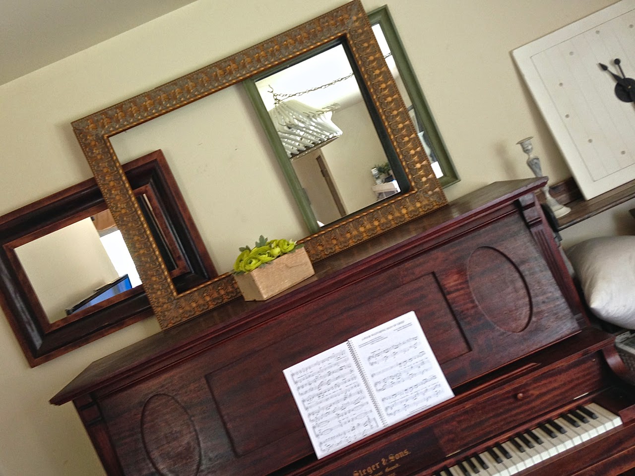 I liked the frame of the mirror and put it on my piano to be out of the way. Turns out I kind of like it sitting up there!