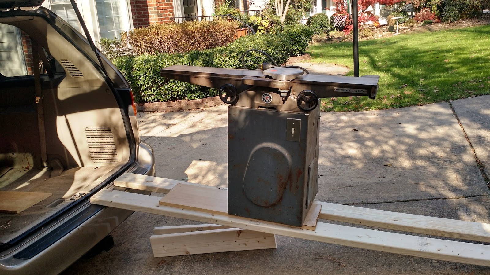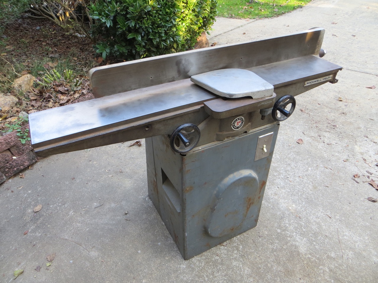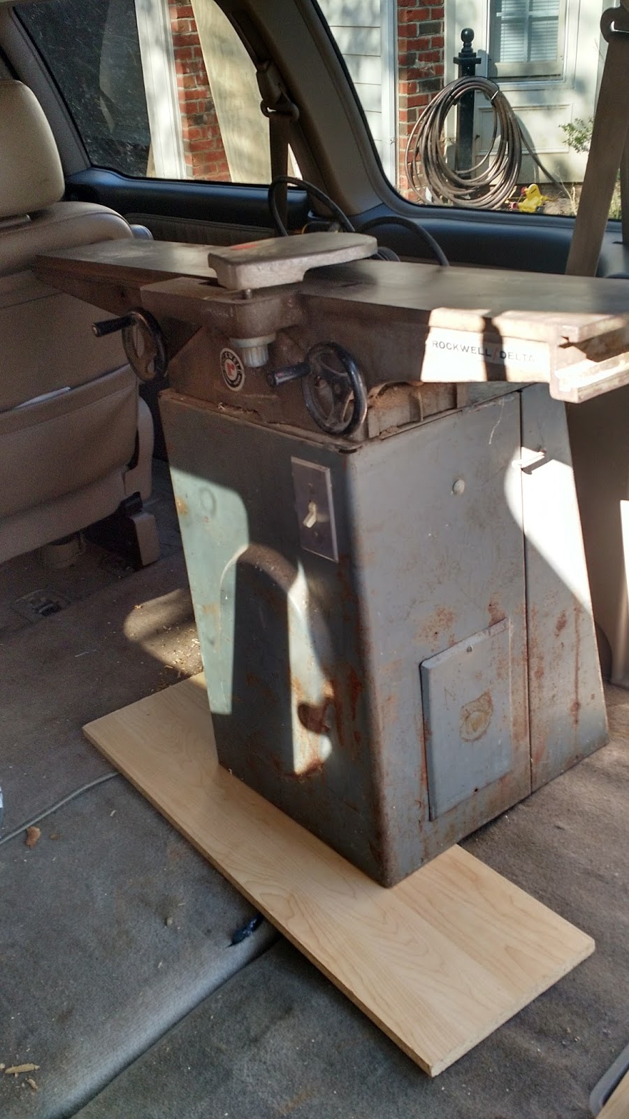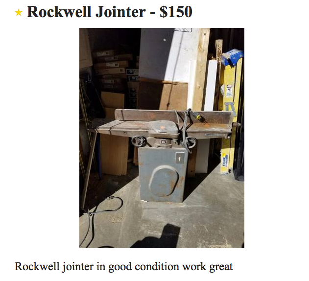 My husband gave me a budget of $400 to buy some shop tools. I’ve been wanting a jointer and a planer for a few years and it’s been on my mind a lot recently. I was excited and started looking on Craigslist hourly for a deal to pop up. When I saw this older Rockwell jointer it spoke to me and I simply had to have it!