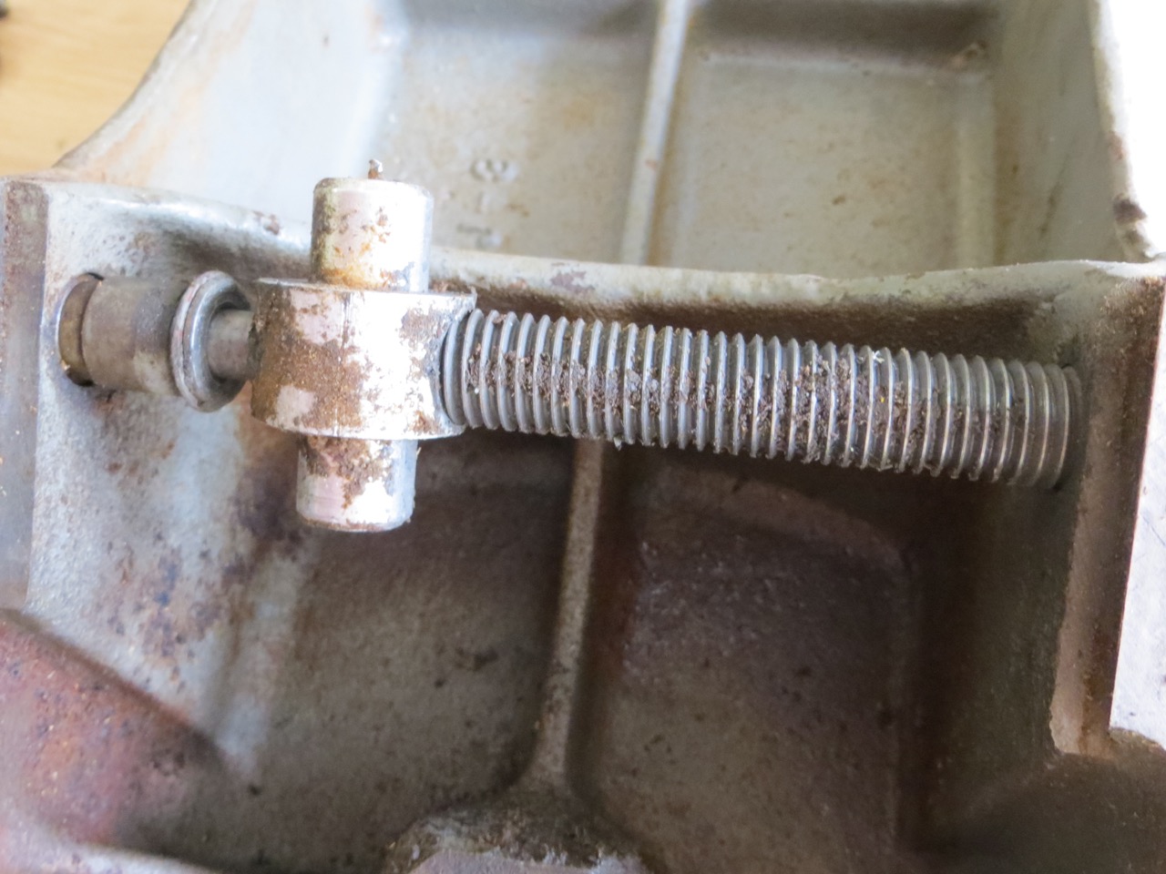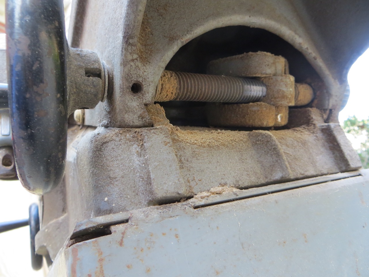 I brushed off a lot of caked on sawdust from the screw rod but you can still see all the debris between the threads – no wonder the tables were hard to adjust!