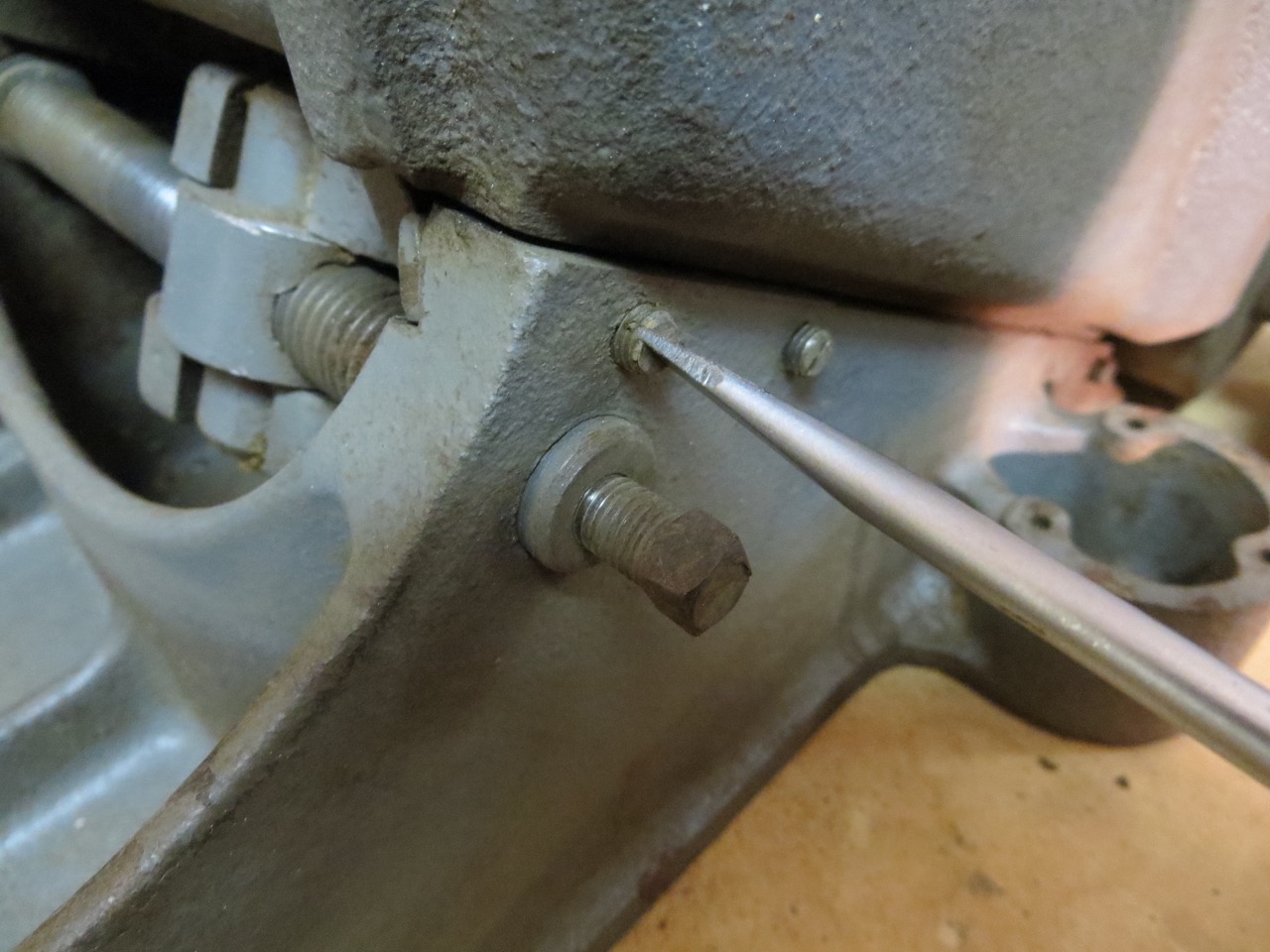 …loosen the bolt with a 1″ socket (I’m pretty sure that’s the size).