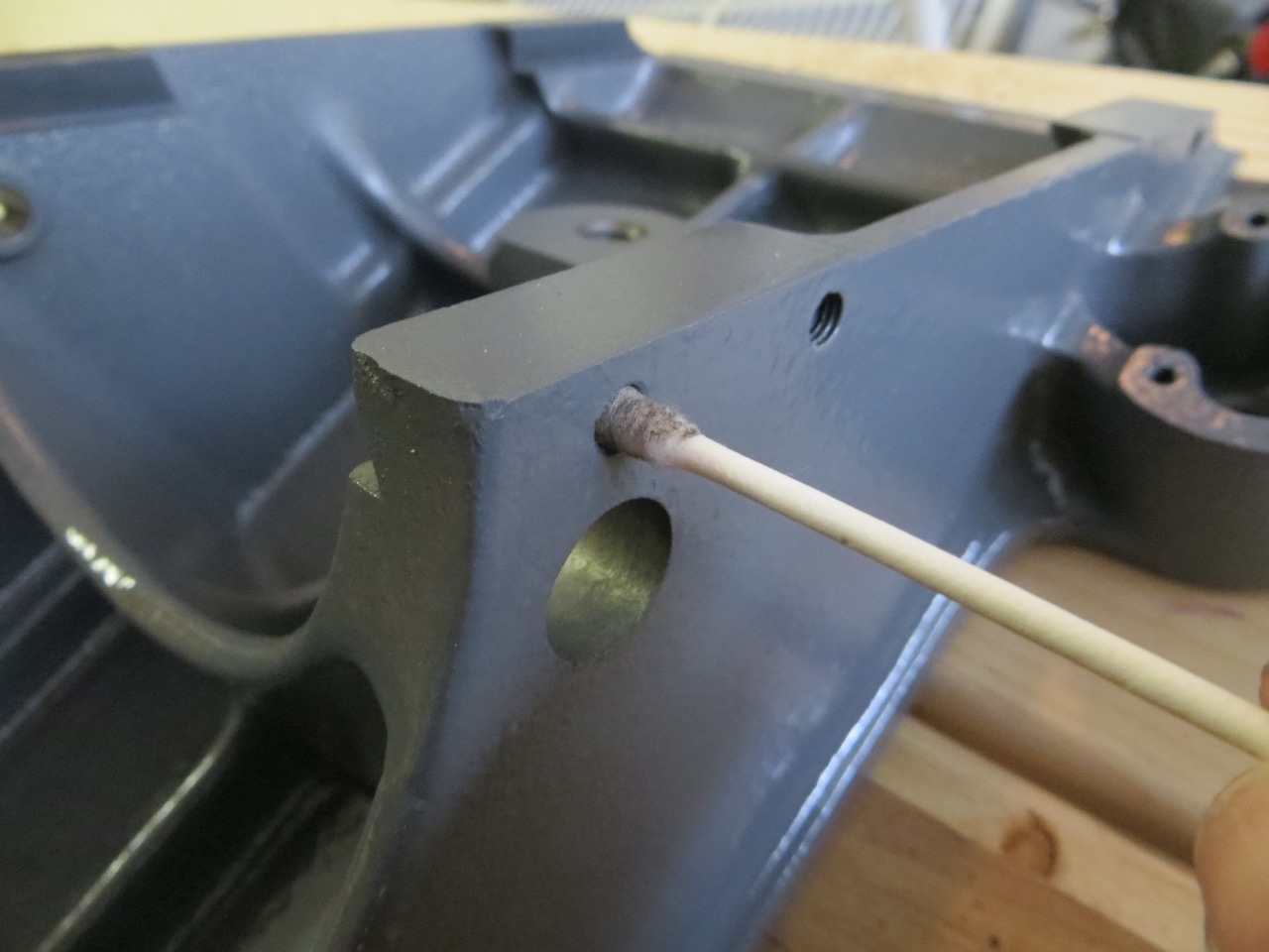 Any areas where shafts, bolts, screws went through got the same treatment. Once the bare metal was showing I wiped WD-40 over those areas to protect from rust and cut down on friction.