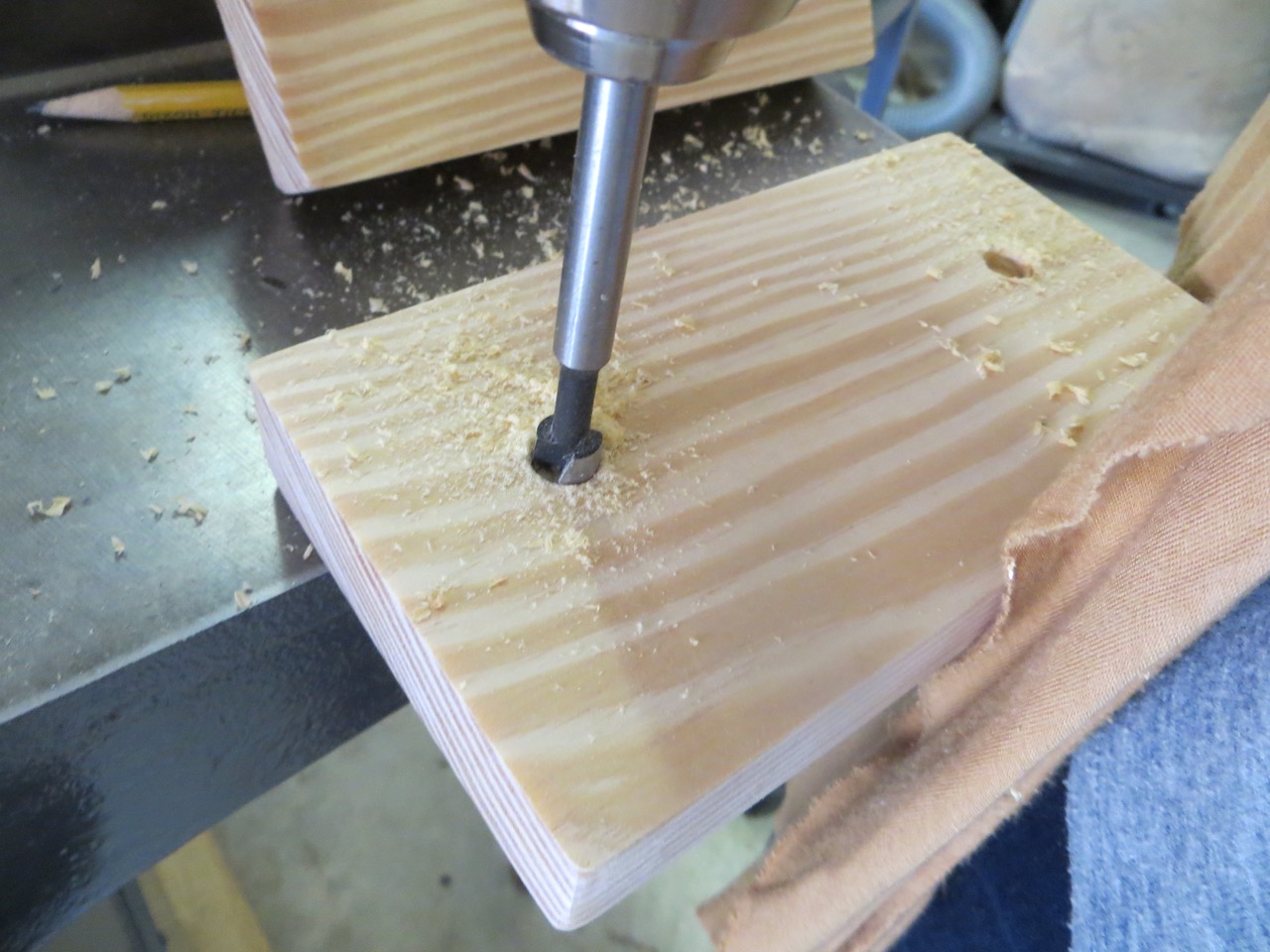 I figured out the placement I needed the bolt (“hinge”) to be and drilled through the arm to the other side until I scored the side of the pedal.
