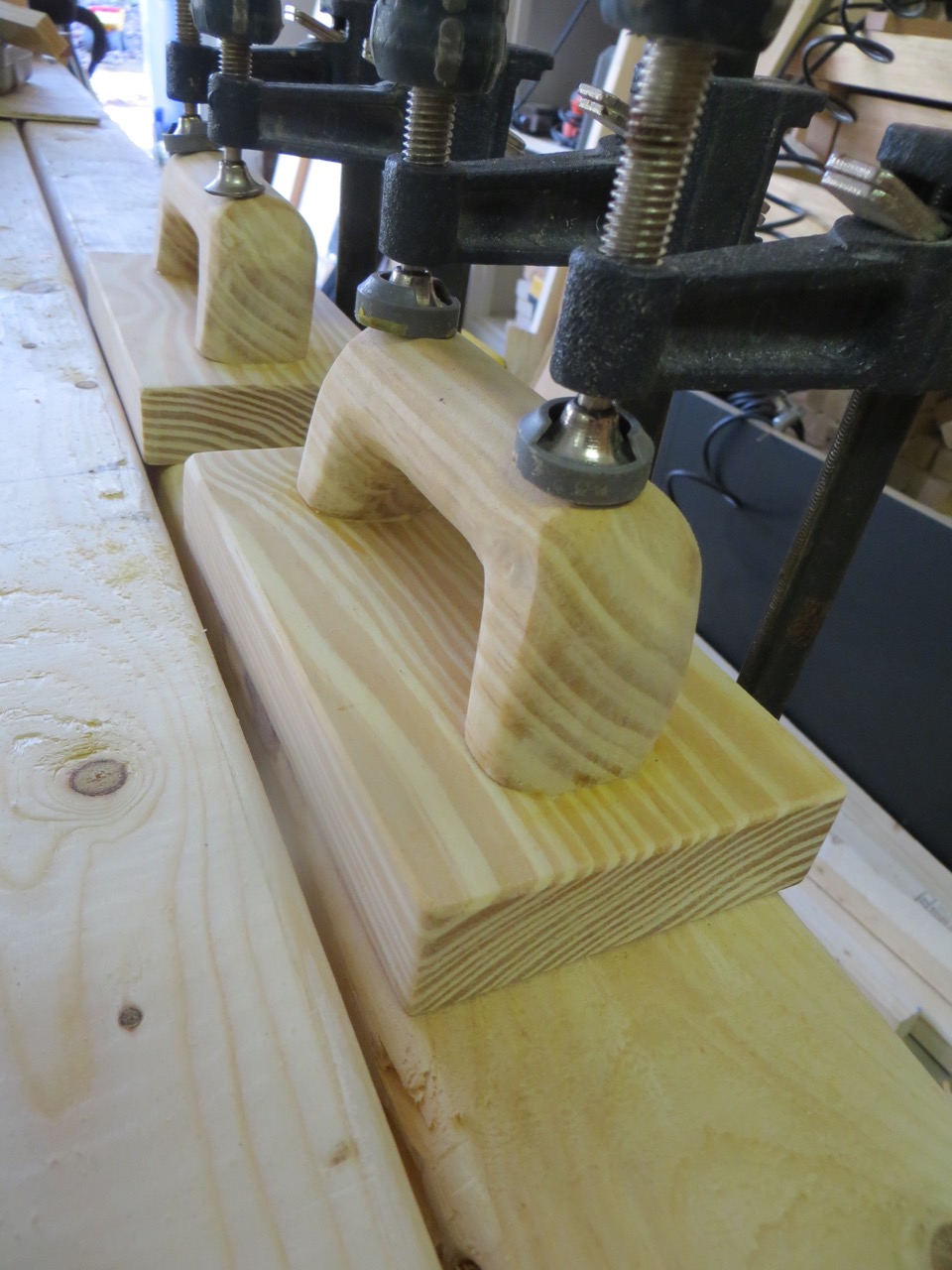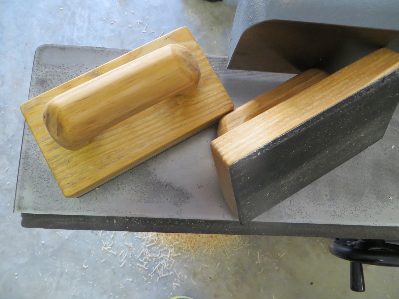 It was amazing how much safer I felt using these! (In this picture you can see the angle of the handles by looking at the block on the right – much more comfortable to push wood through with the angle!)