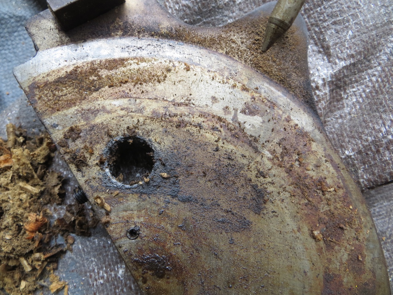 So much rust and gunk! I scrubbed every little bit of surface I could possibly scrub and pulled a towel through and around the areas on the cutterhead shaft I couldn’t reach.