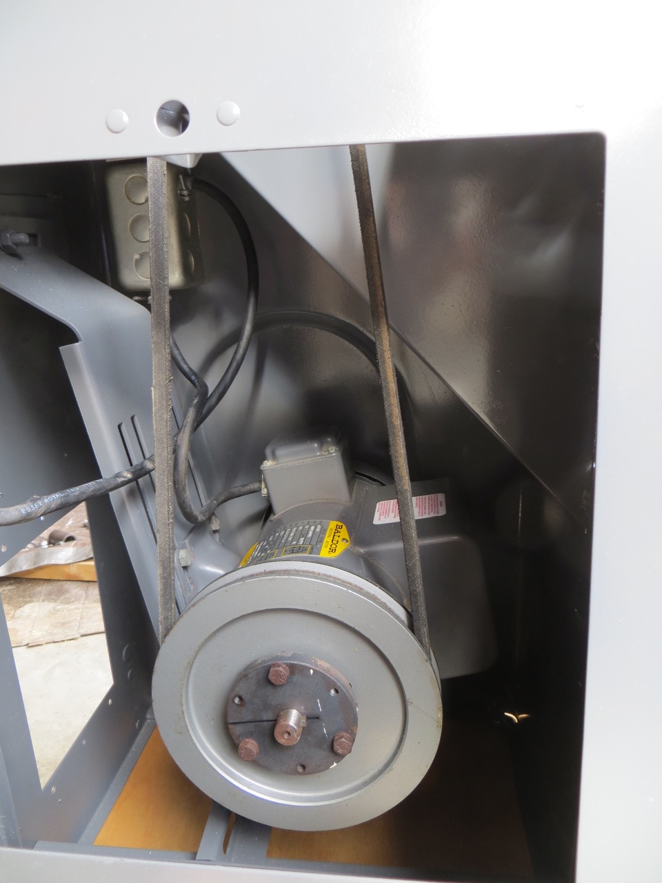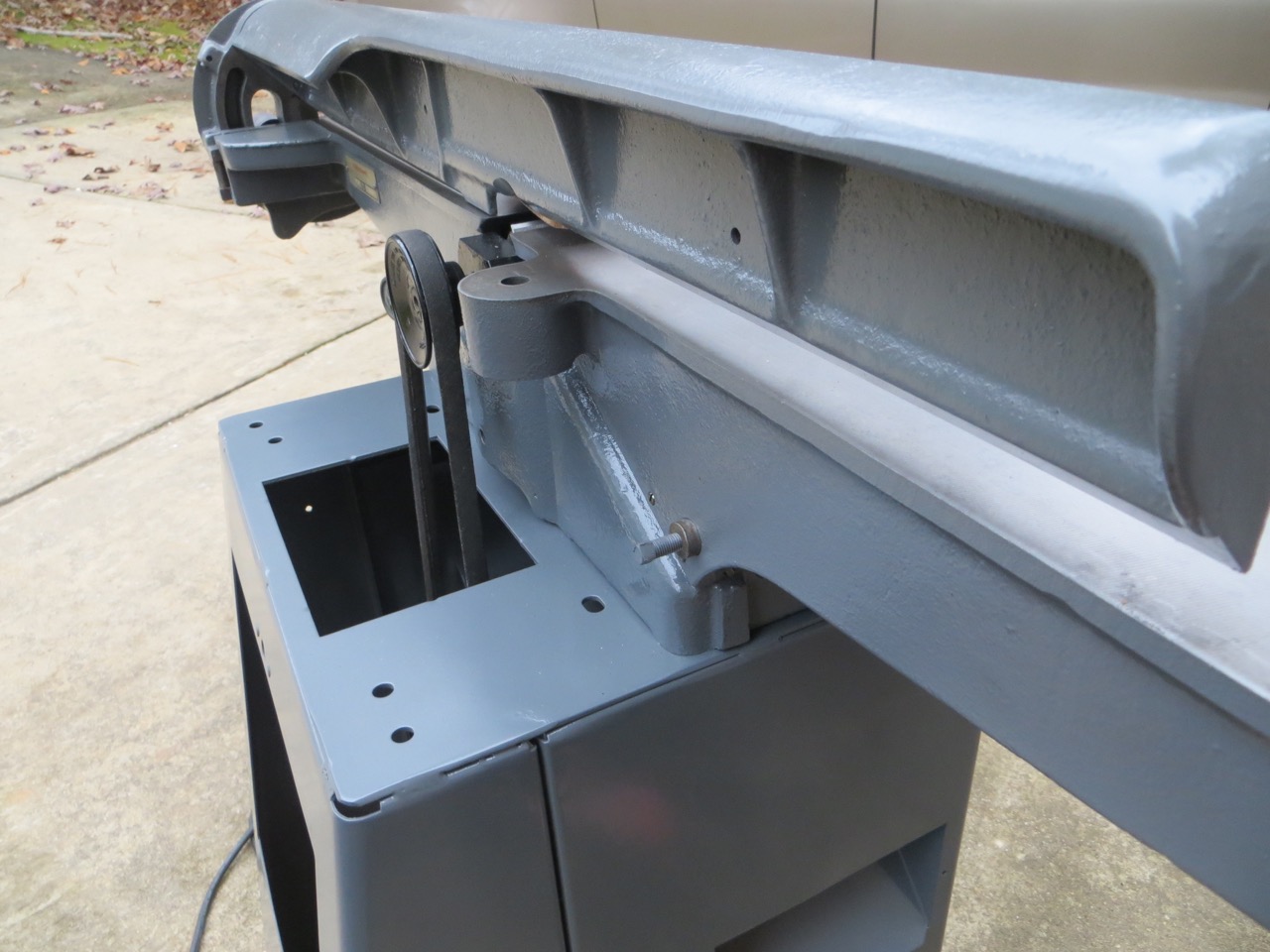 Let the assembly begin! The finish line is in sight! At this point I have the main jointer head bolted back on the metal stand so I can add the v-belt and motor. Ensure that you get the belt tension just right; you want about a 1″ give in the belt when you pull both sides together.