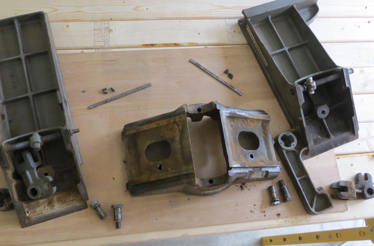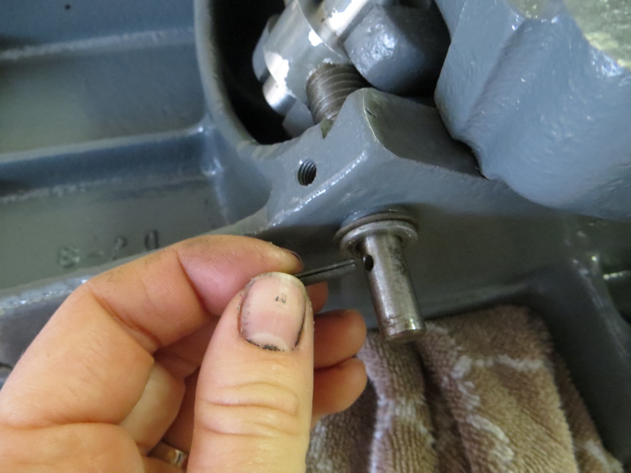 This shows you the “arm” (bell crank), bolt and shoulder pin that keep the tables from sliding off once the gib screws are removed. I tried SO hard to get the tables off without taking these parts off and it’s impossible!