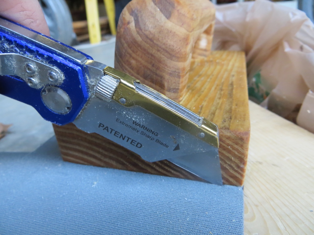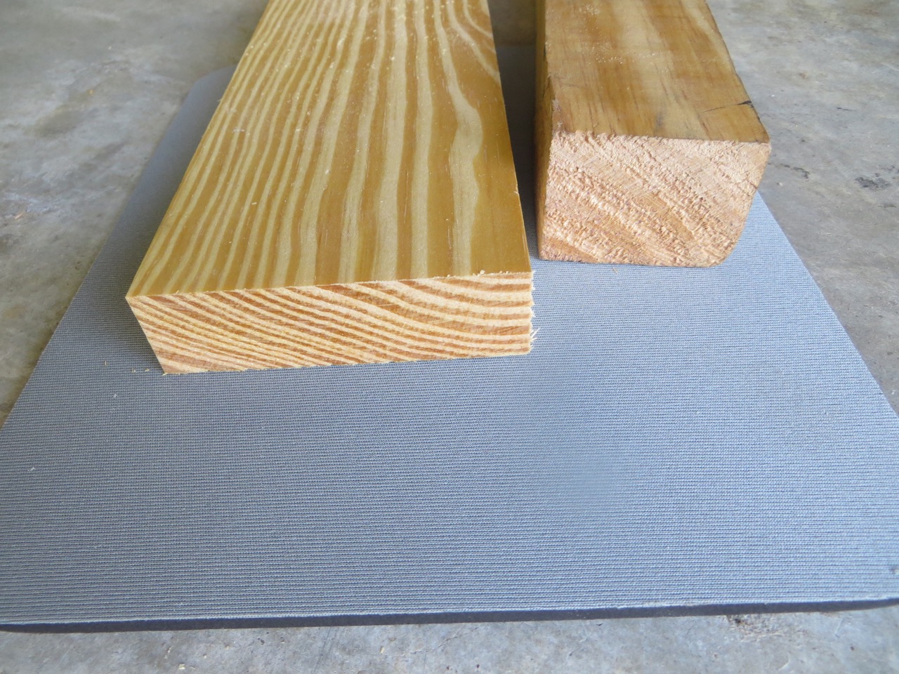 Supplies used: 5/4 board (4″ wide), scrap 2×4 (now a 2×3 basically) and a mouse pad. Also – glue, screws and adhesive.