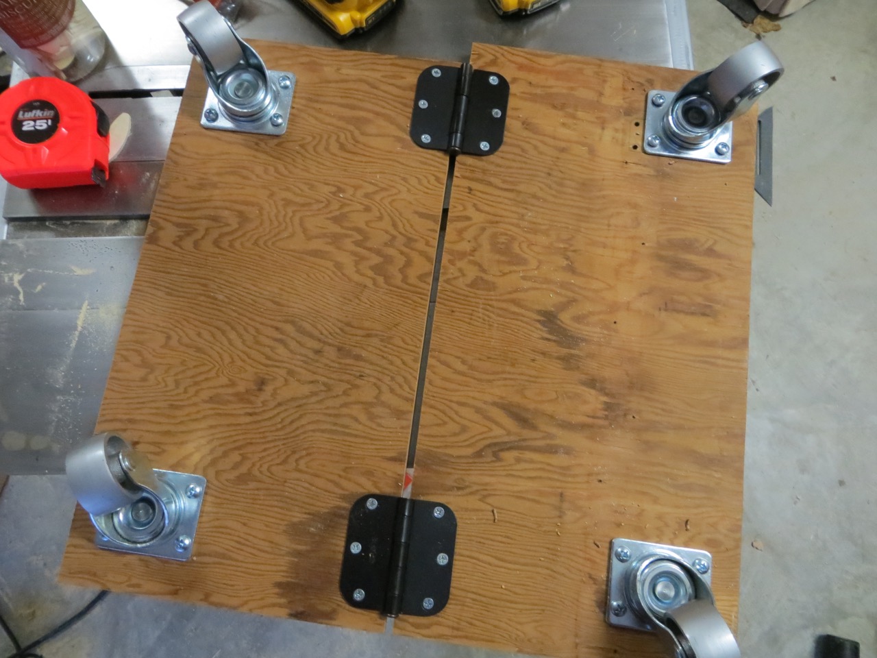 While the base was drying I worked on the guts – caster wheels on hinged plywood boards.