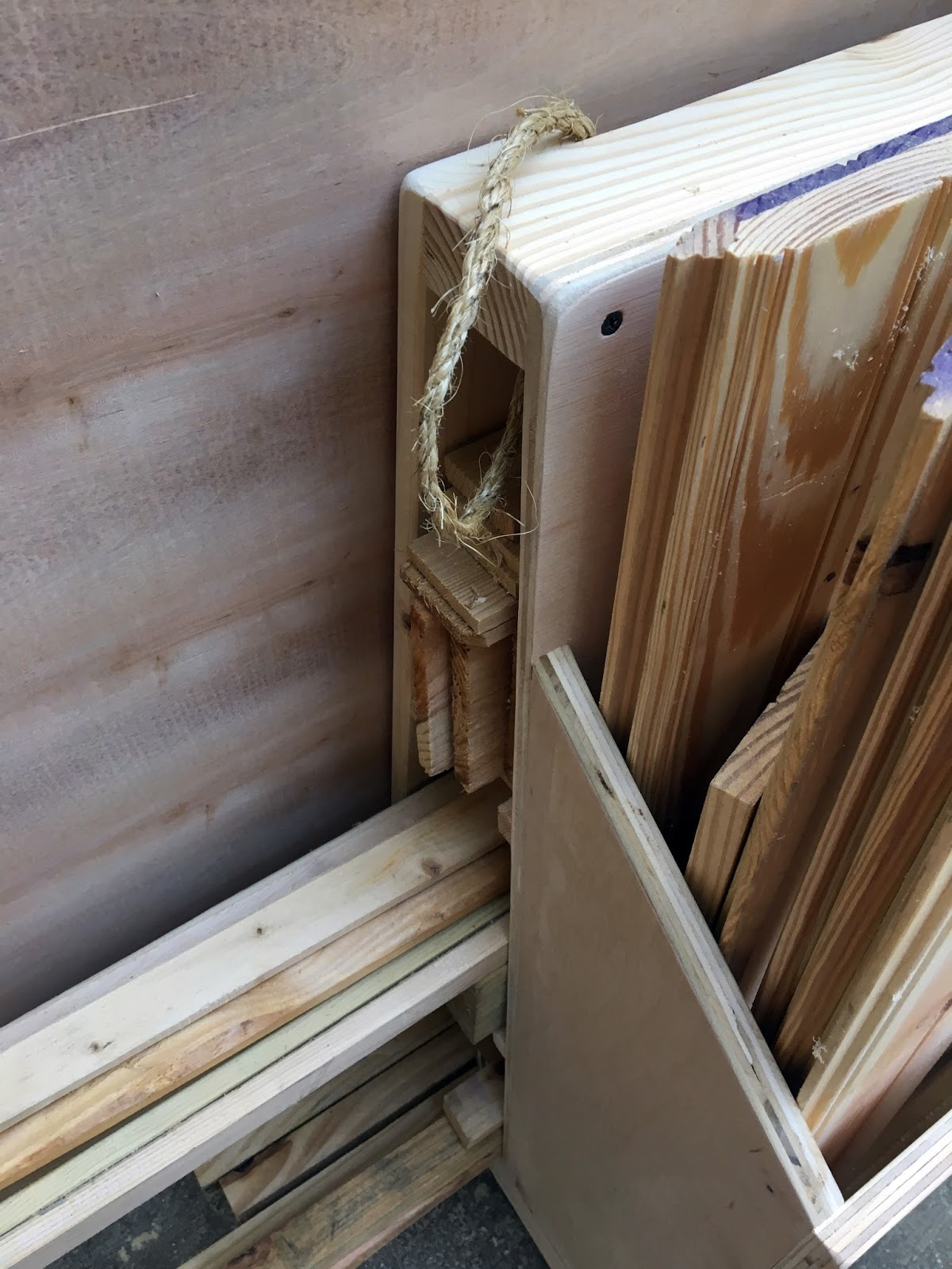 I did have some plywood and 1×4’s that would work. Really, these pictures show you PART of how bad my wood piles got. Ack!