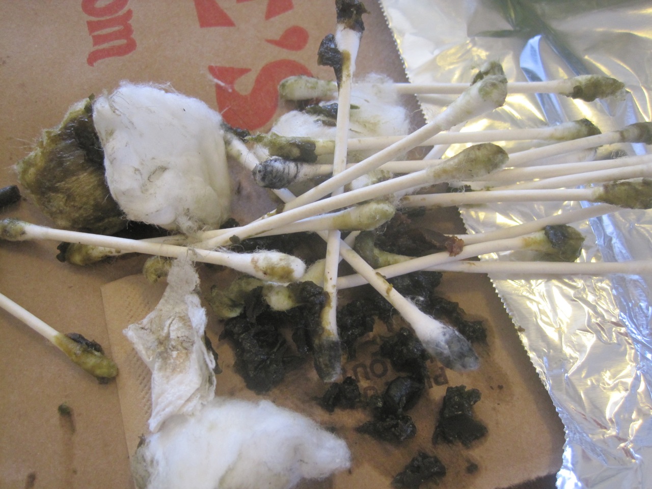 Clean machine. I use q-tips for the interior parts and cotton balls for the exterior because they’re both disposable and I go through a couple handful of each!