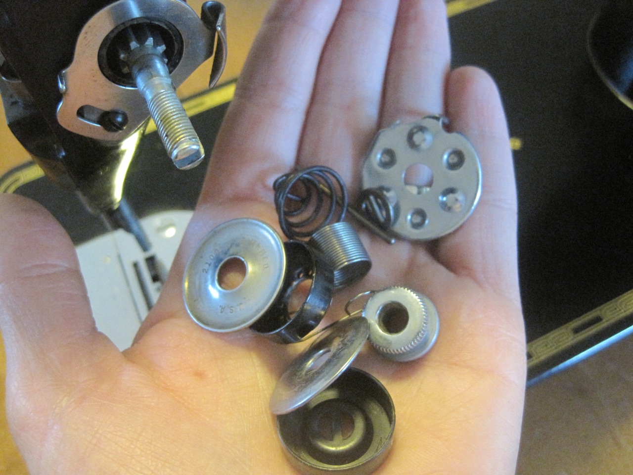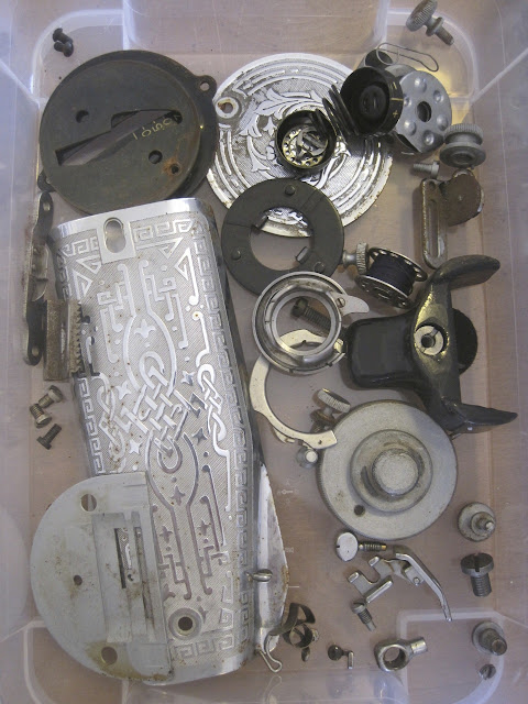 …and bobbin winder assembly without rust. Interestingly enough, I used a wad of tinfoil with drops of lemon juice and rubbed the foil on the rusted parts and the chemical reaction removes the rust!