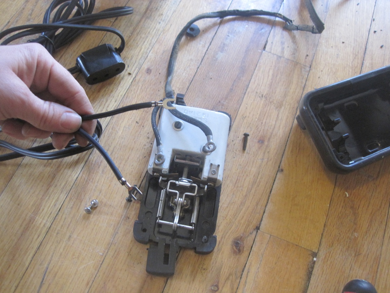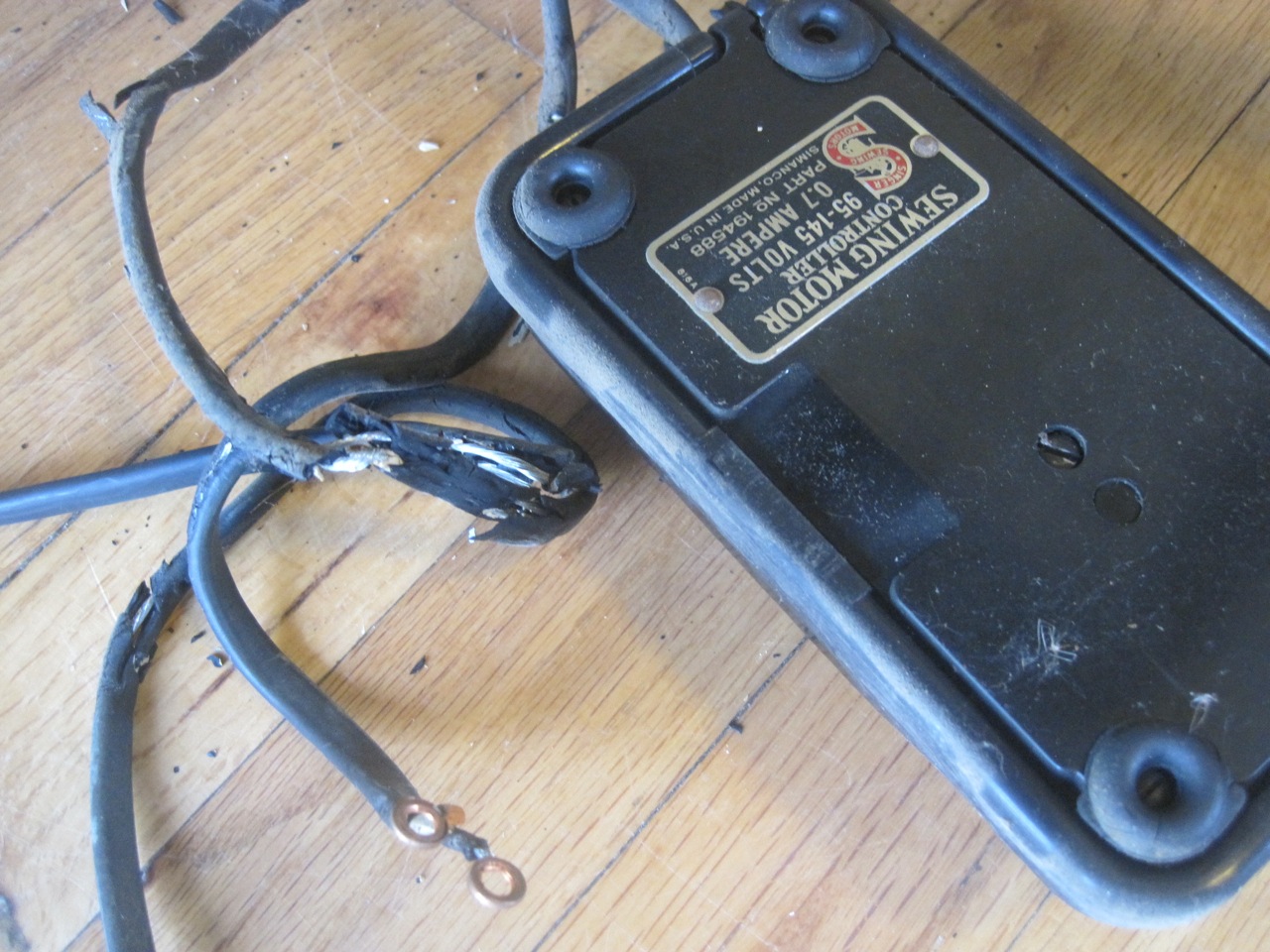 Old, cracked foot pedal and power cords…