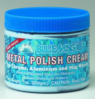 I used BlueMagic metal polish to buff and shine the silver metal pieces. This stuff is amazing! I brush the cream on with a tooth brush and clean and buff with cotton balls.