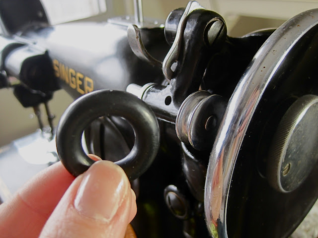 Put the hand wheel back on. Replaced the bobbin winder tire.