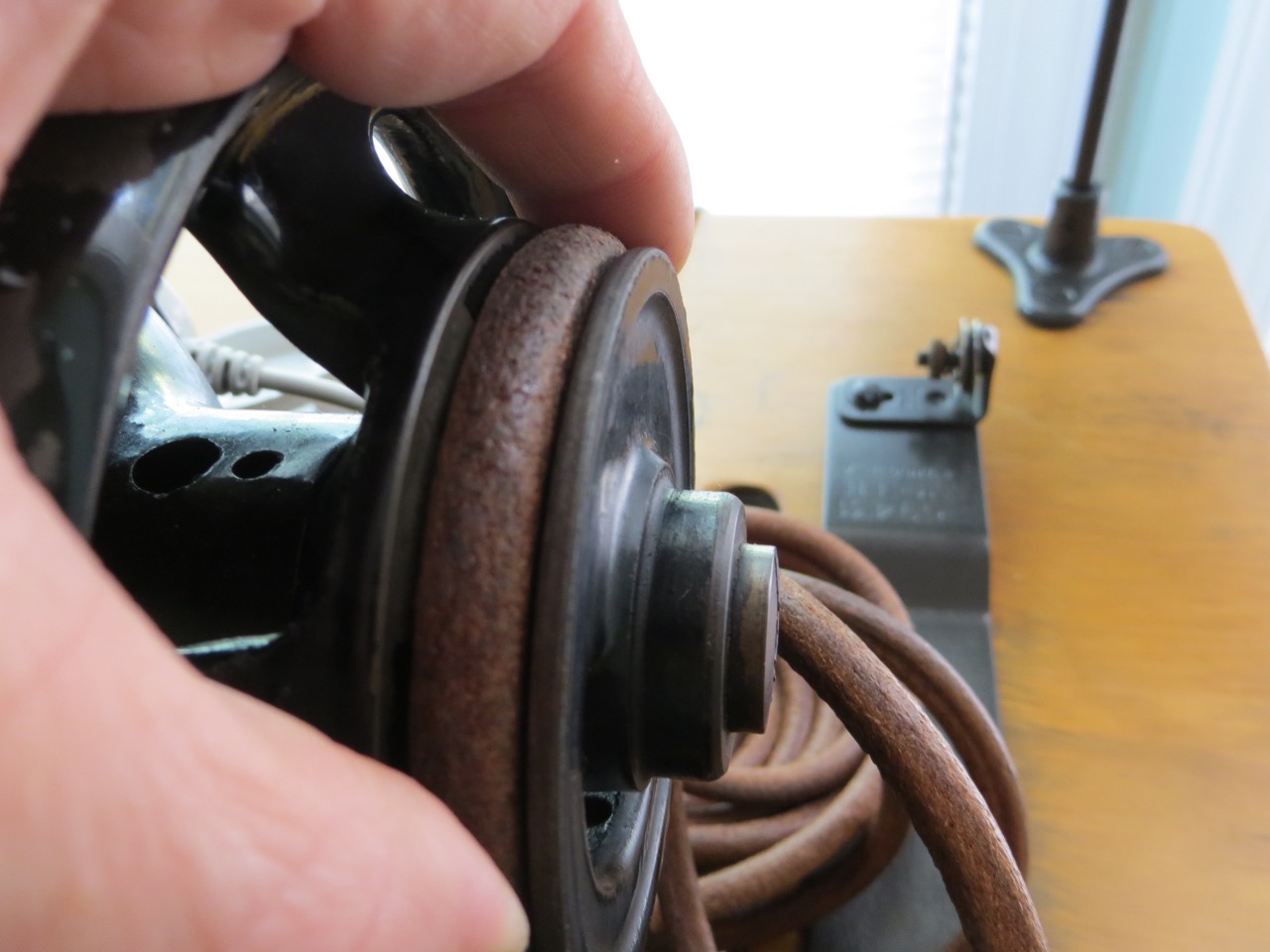 Put your belt around your motor pulley again and up next to the hand wheel.