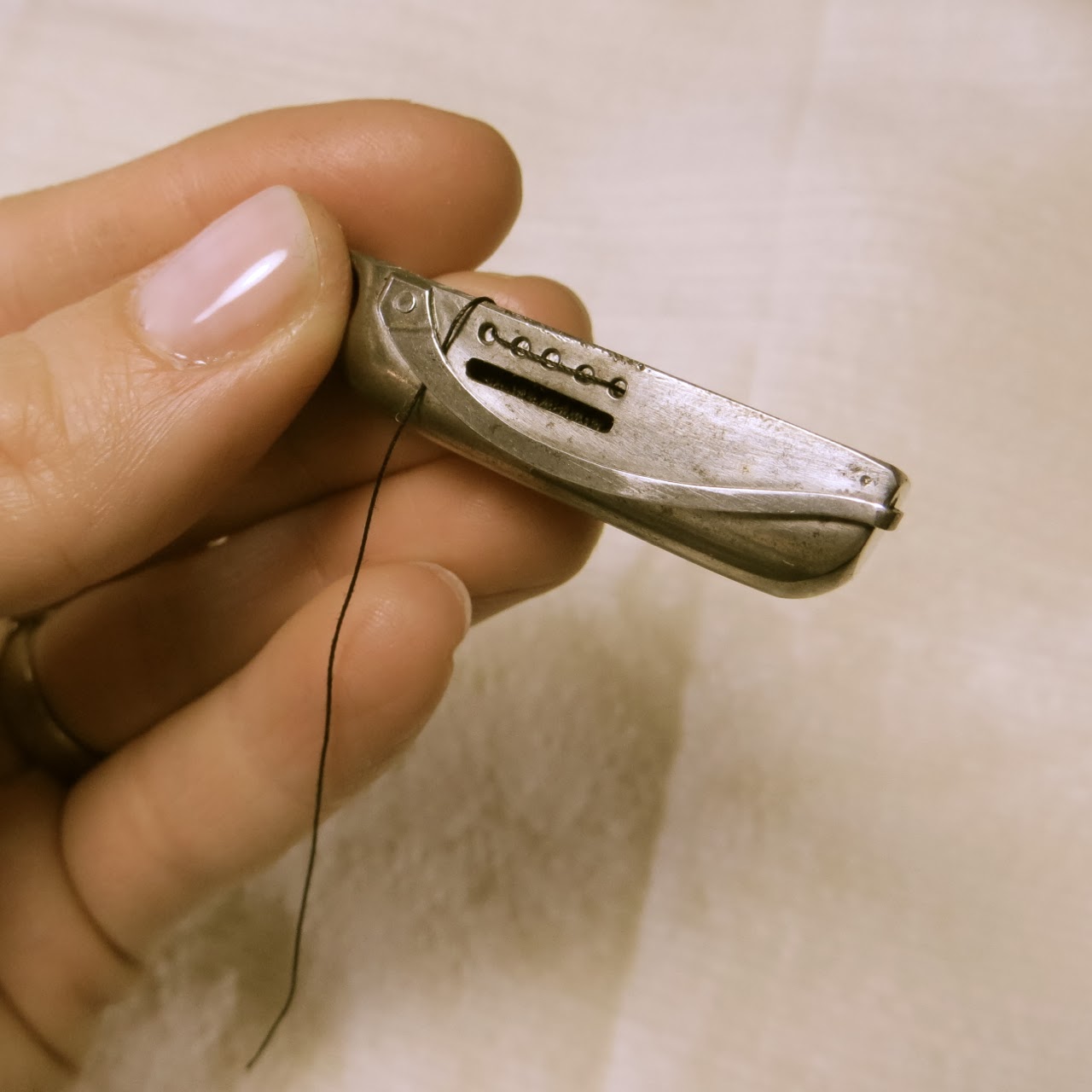 One thing to be aware of is that these machines take different needles than the universal needles modern machines take. The are much longer and the shank is more narrow and completely round without a flat side. These are extremely rare if you’re looking for original needles, but if you want to buy reproductions I found a lady on Etsy who sells them.