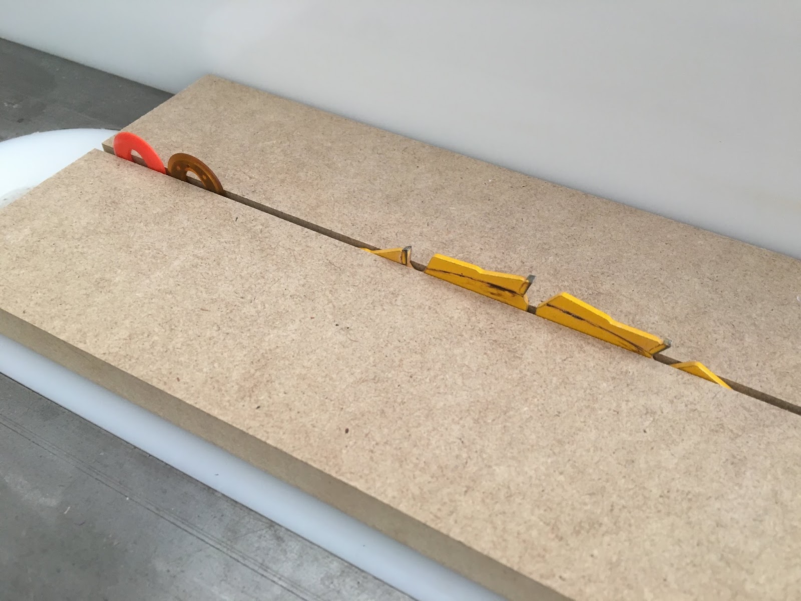 Cutting through my test board shows me that the blade groove matches up with my splitters – wahoo!