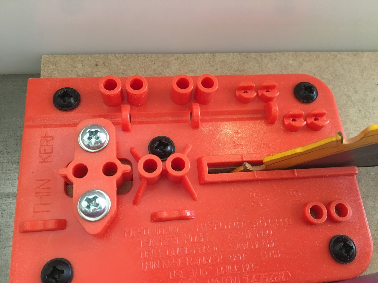 I used 1/2″ MDF for making my setup board. One you get through the instructions to actually screwing the drill guide onto your board, use a self-centering bit to streamline the process and get the holes dead-center.