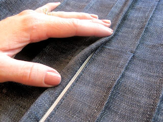 You’re going to sew along your lines** by pinching your fabric so the line is on the edge.