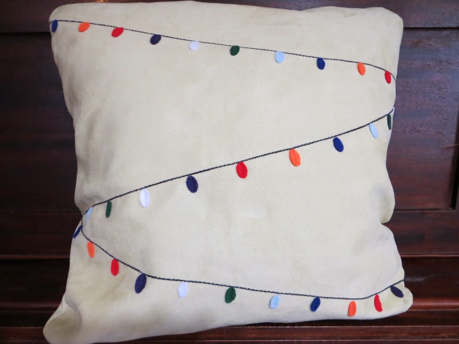 I had 7 colors and cut out 5 lights of each (I used a total of 33 lights on my cover). I held my pattern against my felt while I cut around it or you can take extra time and use a sharpie and trace around your pattern.