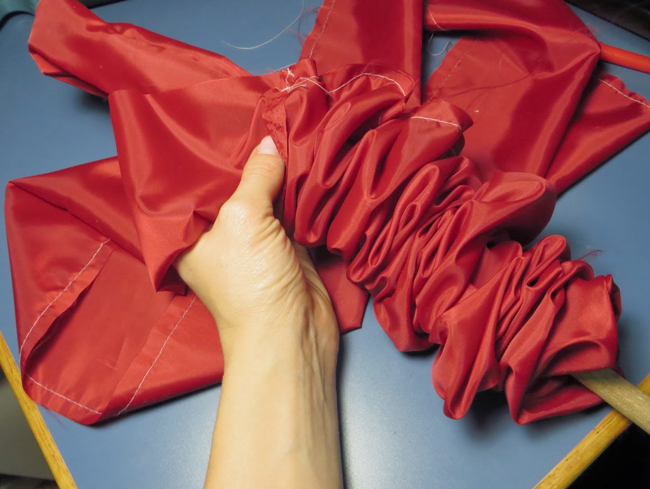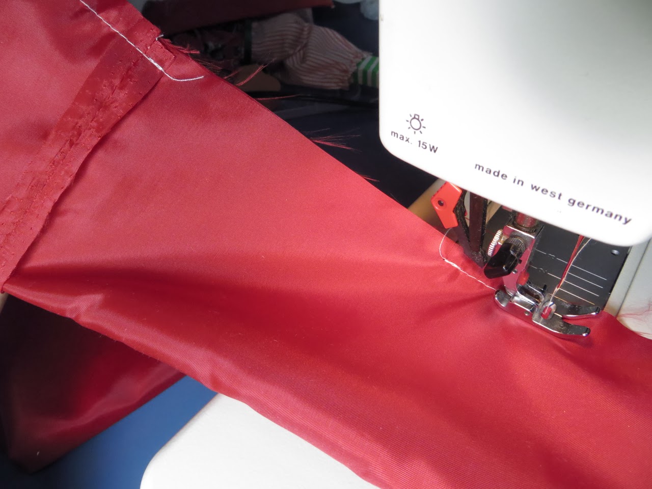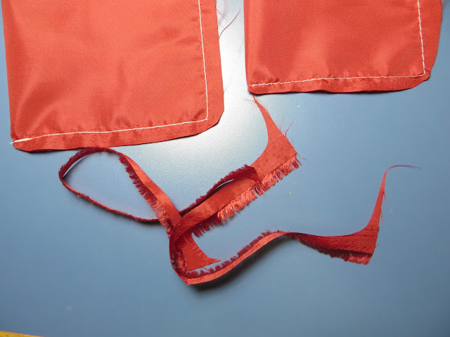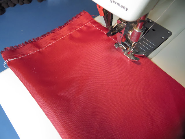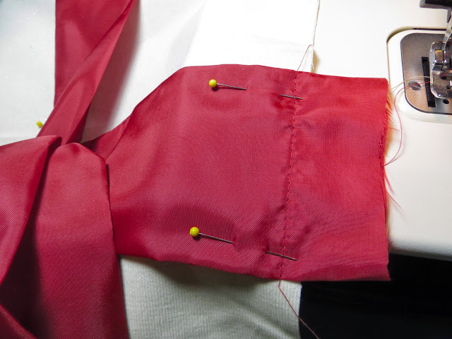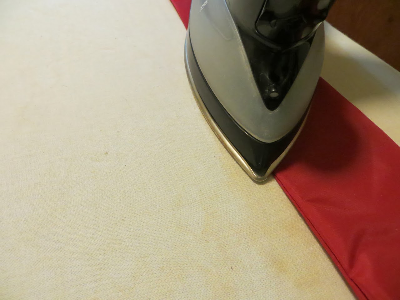 Sew the short ends of your red fabric together with a 1/4″ seam. Press seam open with a warm iron.