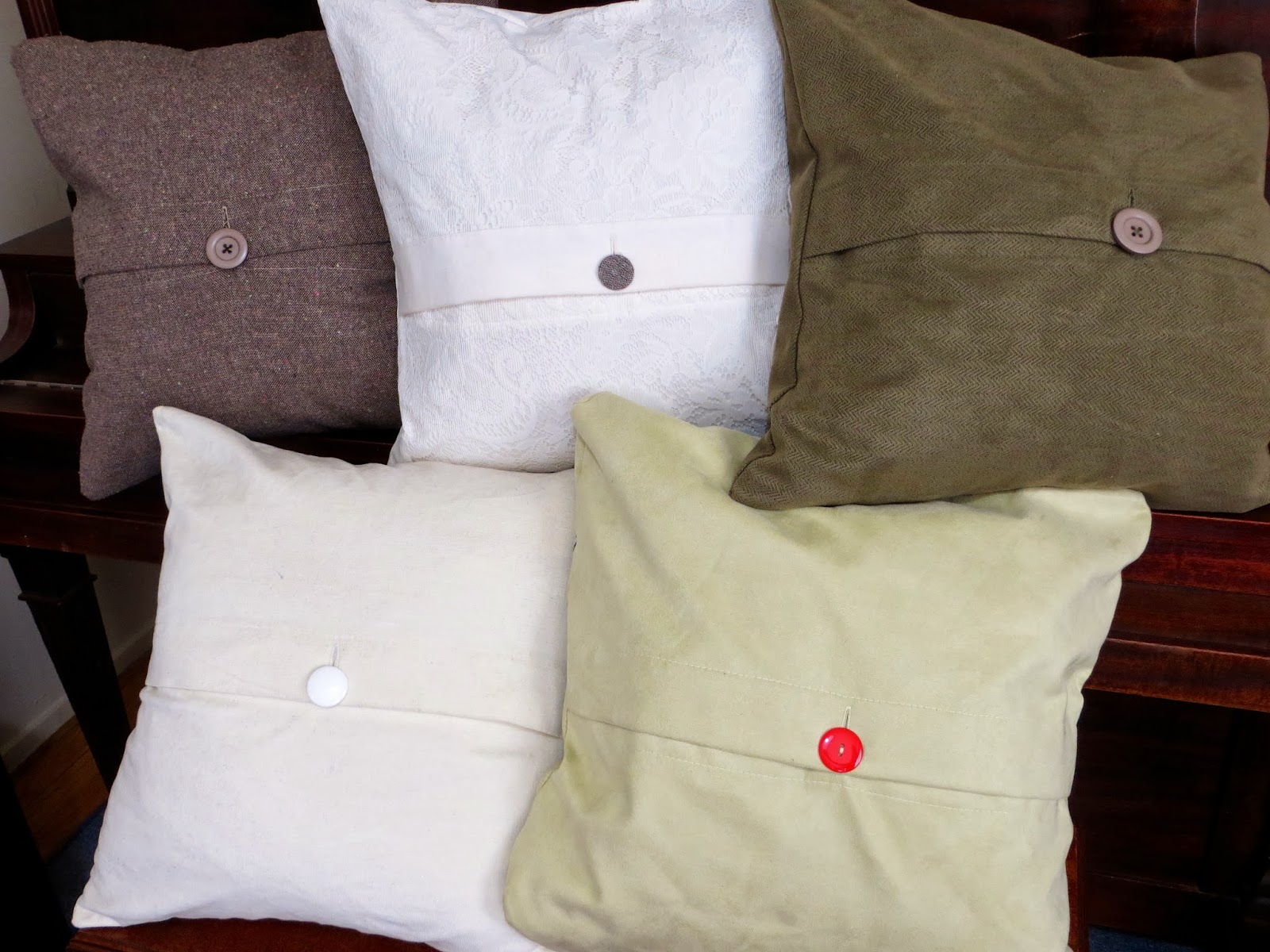 Turn pillow right side out and lay flat. Now you can mark where to put your button! Just mark through your buttonhole to the backside where you’ll be putting your button. TIP: I like to put my button off-center from my buttonhole so my cover can’t pull apart too much (because the buttonhole is so long).
